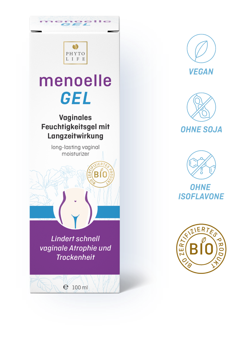 • menoelle® Gel ist die hormonfreie, natürliche Alternative zu synthetischen und chemischen Feuchtigkeitsgelen für den Intimbereich.